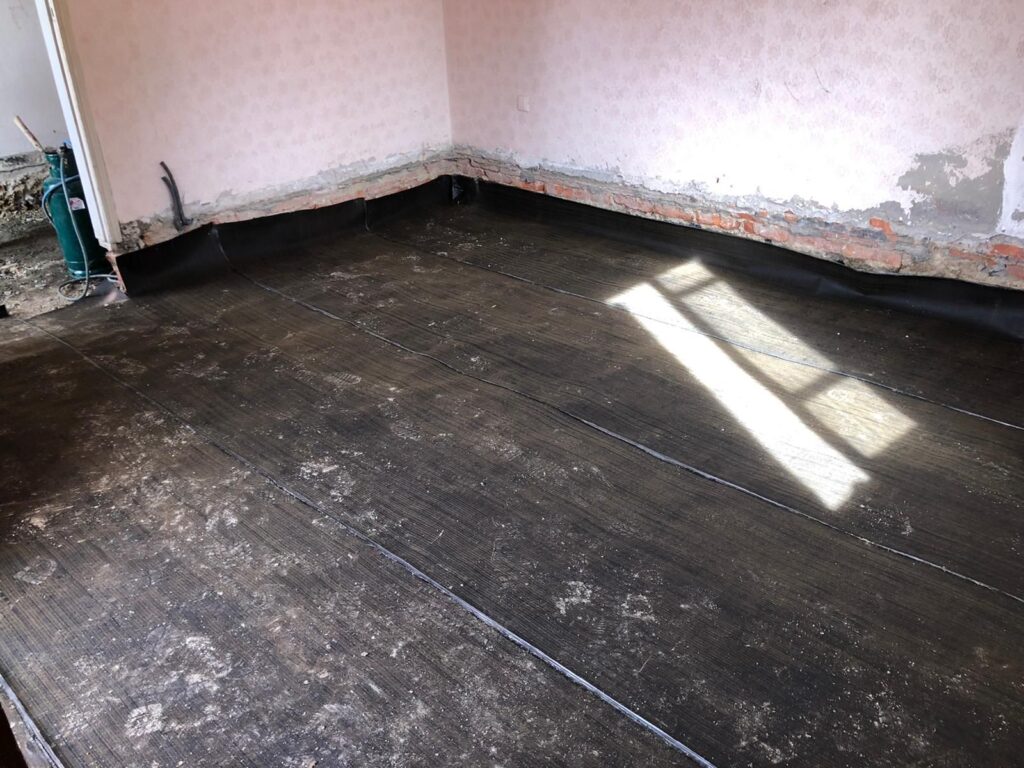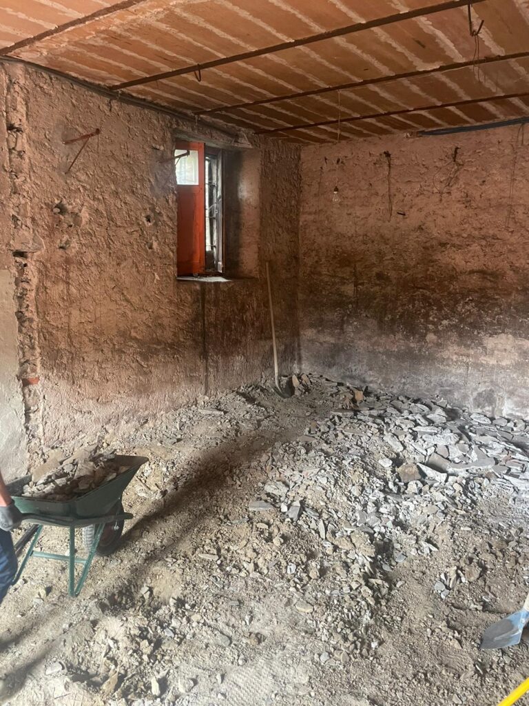 He informed me that we needed to “waterproof” near the base of the house on the outside. Ok, but as far as inside, why don’t we just take up the flooring and put in new tile? Problem solved, right? Wishful thinking. It turns out the fix for the moisture problem was to remove the existing flooring but also to dig out the layer of concrete and 12 inches of the packed dirt that made up the foundation. After that, we need to install a waterproof rubber membrane (lining) on the floor and part-way up the walls throughout the ground floor. Welcome to renovating in Italy!